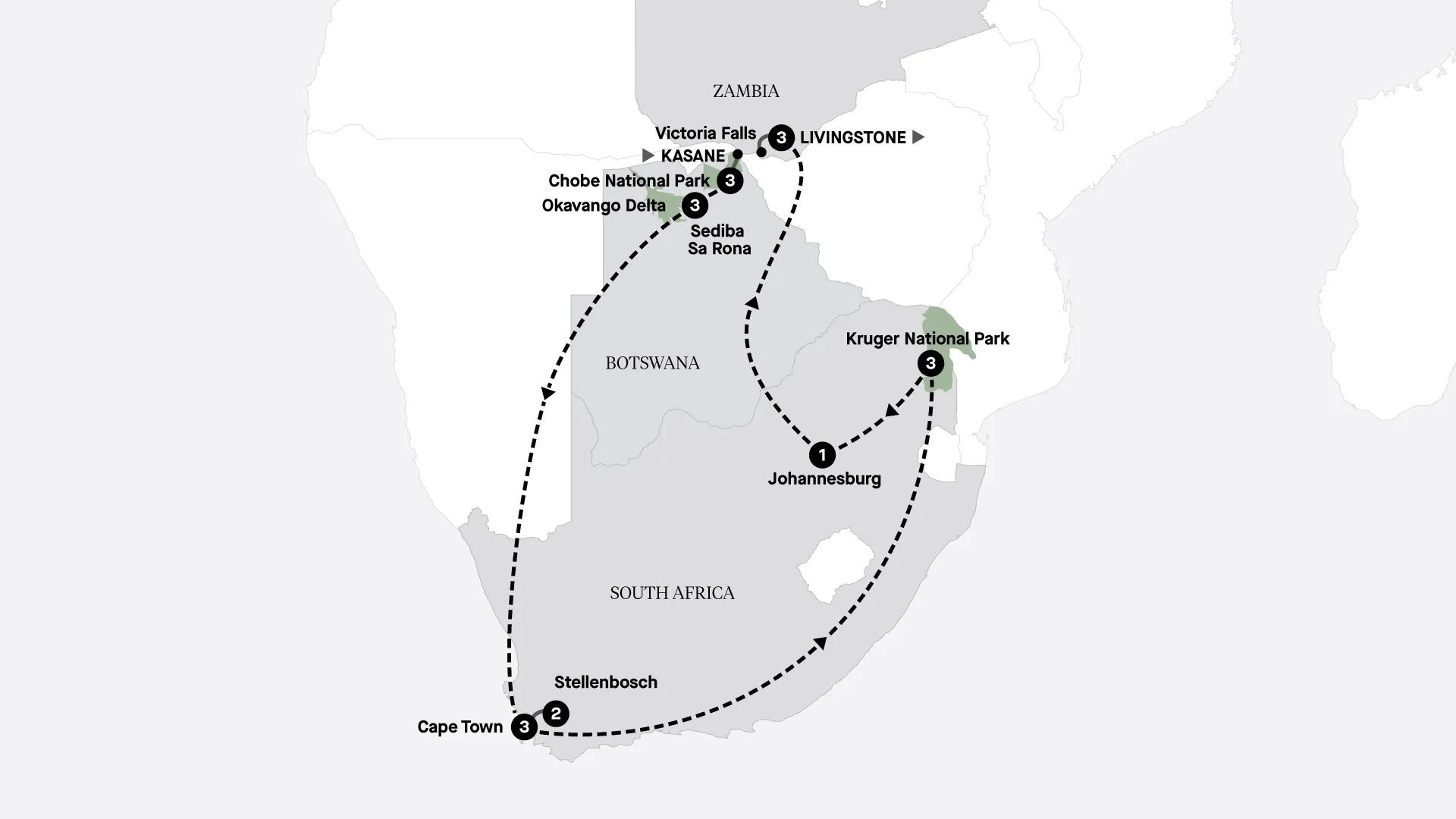 Immerse yourself in the splendour of Botswana, South Africa and Zambia on this 19-day small group tour with no more than 24 guests. Embark on thrilling game drives in Chobe National Park, explore the serene Okavango Delta, discover vibrant Cape Town and spend three nights at the Royal Livingstone Hotel with direct access to Victoria Falls from dawn till dusk. Enjoy unrivalled stays, unforgettable wildlife encounters and breathtaking landscapes at every turn.