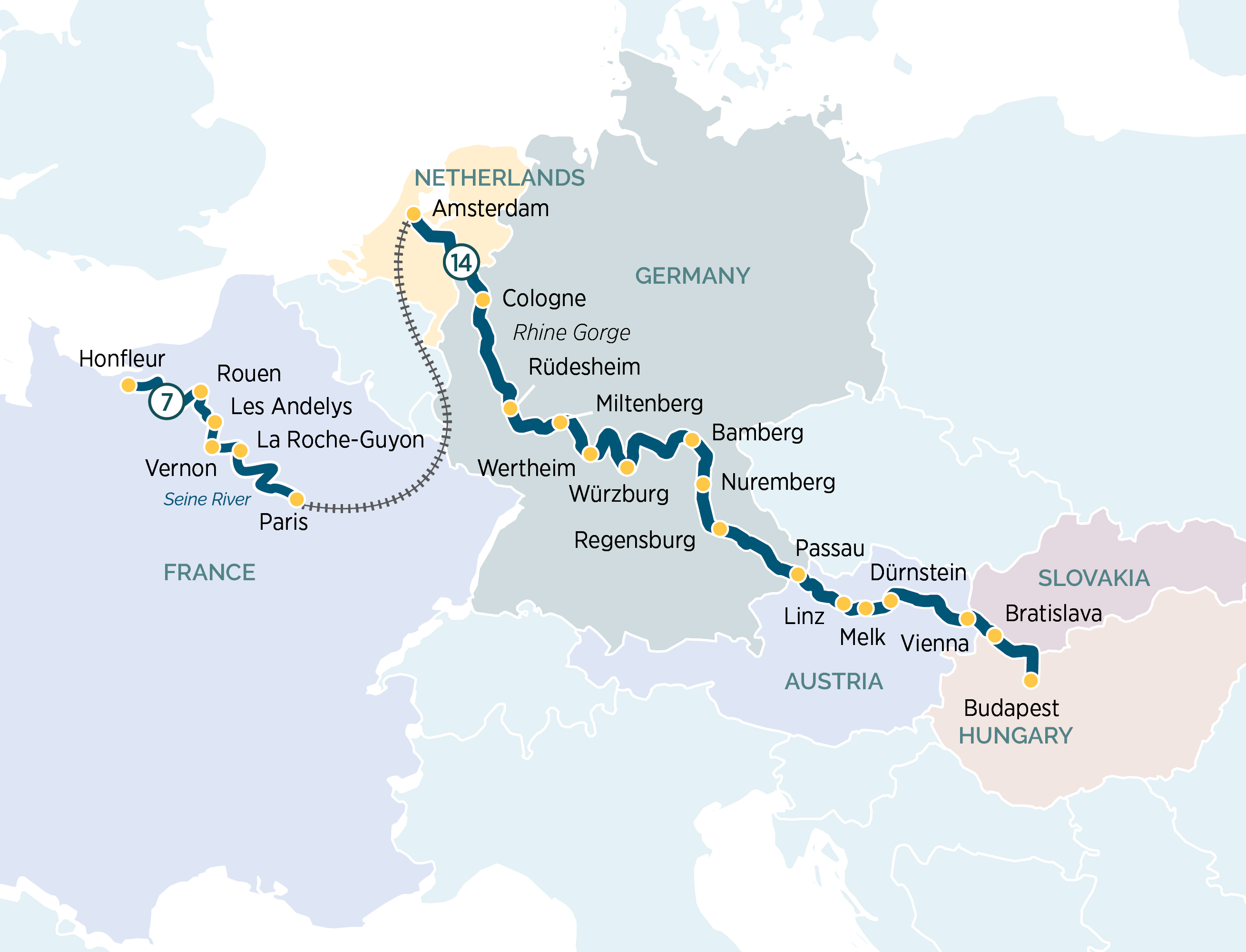 This itinerary is a guide only and may be amended for operational reasons such as high and low water. As such, the cruise may operate altered from that stated above. Please refer to our terms and conditions for further information.