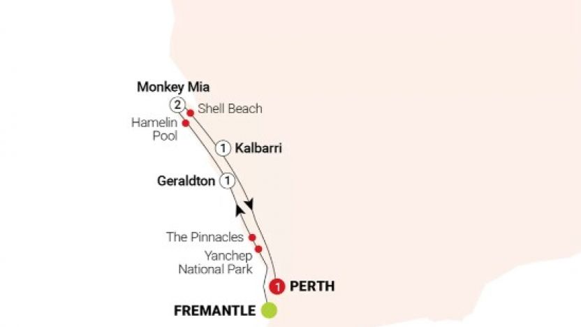 - 5-night Monkey Mia Dolphins and West Coast tour including 5 breakfasts & 2 dinners.