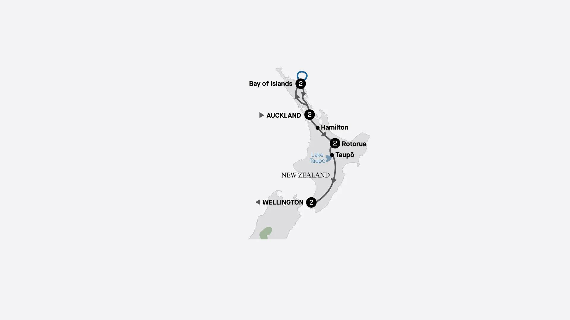 Explore New Zealand’s North Island over nine spectacular days. Admire the subtropical splendours of the Bay of Islands during a cruise, explore Auckland's sailboat-studded harbour, uncover geothermal wonders and Maori culture in Rotorua, and spend time in Wellington, New Zealand's proud capital city.