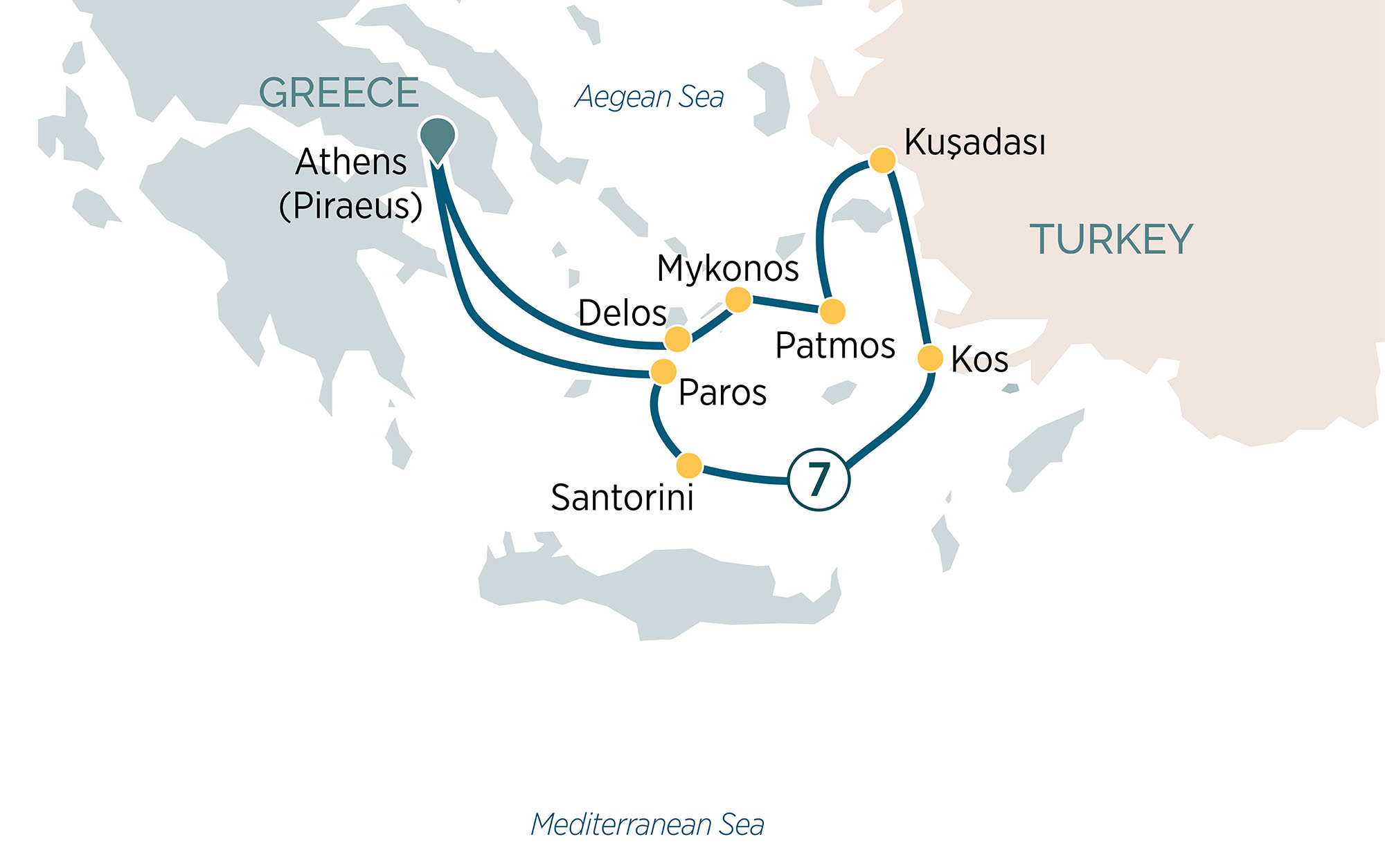 Embark on a luxurious 8-day cruise through the Greek Islands and along the coast of Turkey, setting sail from the ancient capital of Greece, Athens. Your first stop will be the sacred island of Delos, followed by the vibrant island of Mykonos, world-famous for its hedonistic lifestyle and hillside whitewashed architecture. Continue your journey to the serene island of Patmos, renowned for its religious significance and Kusadasi, gateway to ancient city of of Ephesus, UNESCO World Heritage Site. Kos, an idyllic island where you can relax on pristine beaches or explore ancient ruins. Then sail to Santorini Island and admire the iconic sights and picturesque Paros, where you can wander through the island’s charming villages and enjoy the Aegean Sea’s crystal-clear waters. Finally, you’ll return to the historic city of Athens, where your unforgettable cruise concludes.