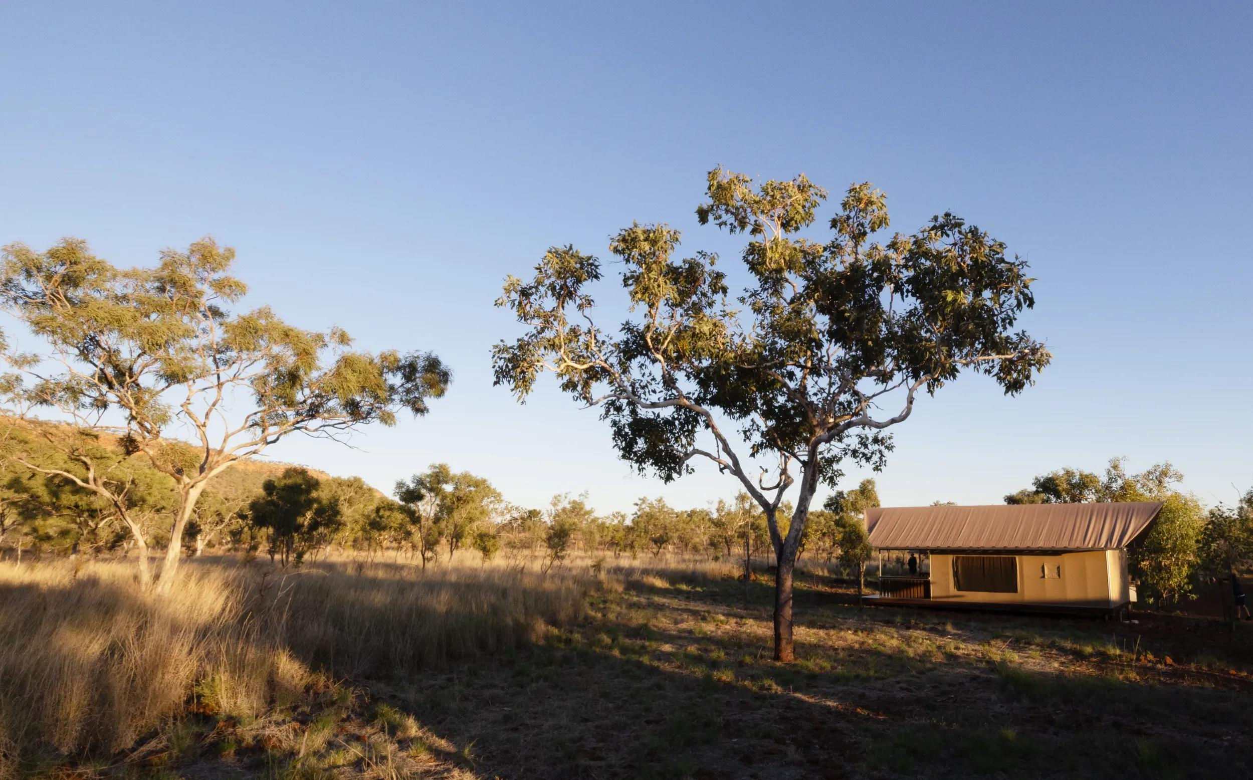 Partnered with the Indigenous Imintji community, APT’s Bell Gorge Wilderness Lodge overlooks the stunning Wunaamin Miliwundi Ranges. The lodge features an open-air dining area and bar, large private tent cabins with private decks overlooking the escarpment, plush interiors and an en suite with a walk-in waterfall shower.