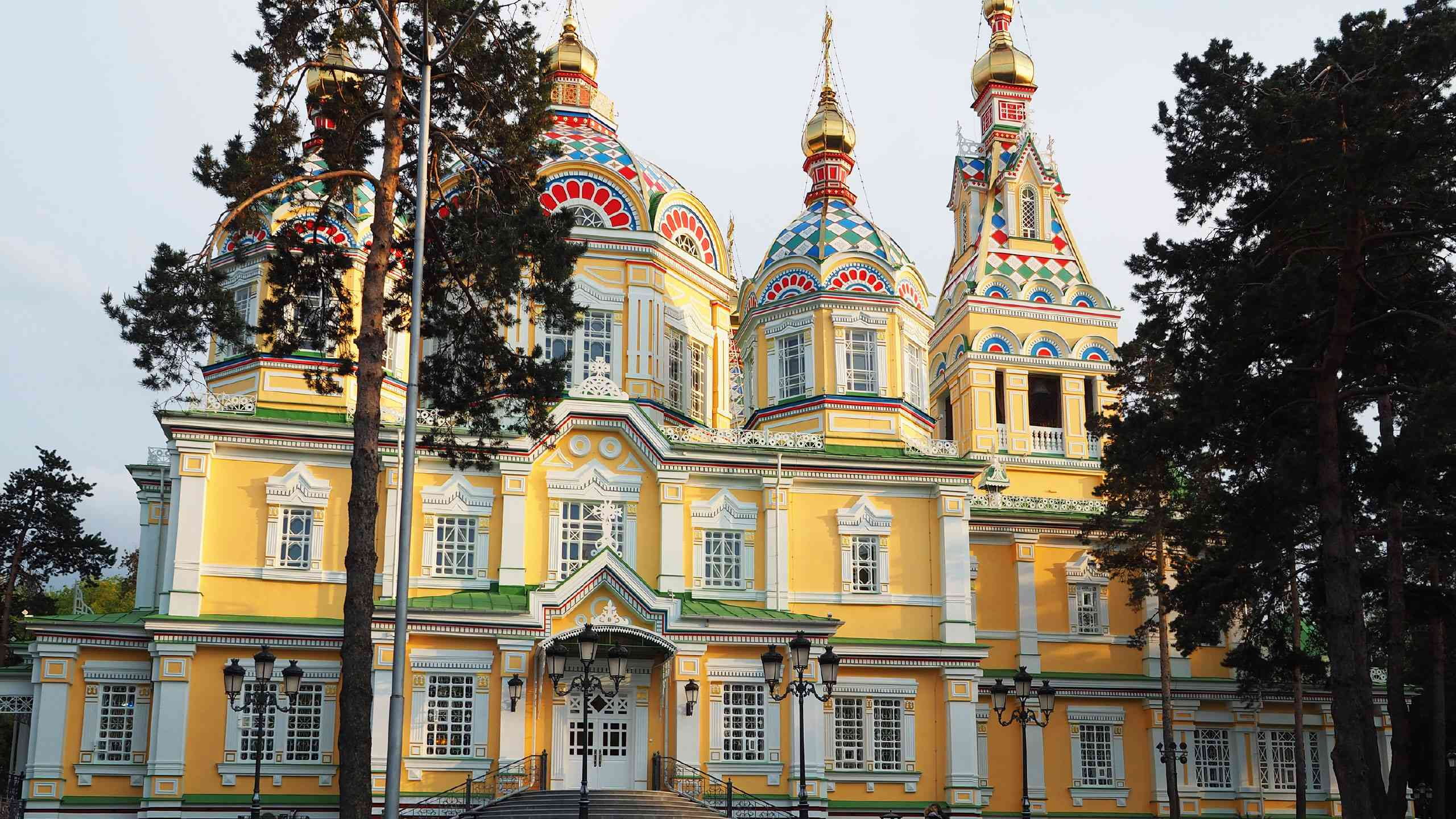 Next up is a true Almaty showstopper, the Zenkov Cathedral. This candy-coloured marvel is made entirely out of wood (even the nails!) and dazzles with its bright domes and ornate designs. Once a museum and concert hall during Soviet days, it’s now a thriving hub of Russian Orthodox life — you’ll definitely want your camera handy for this one!