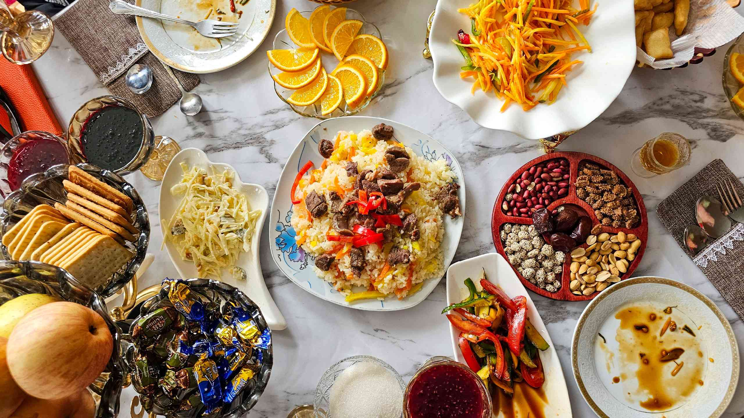 Watch as local ingredients are layered to create Uzbekistan’s beloved national dish. Then, once it’s ready we’ll sit down together and savour this delicious, flavour-packed rice meal.
