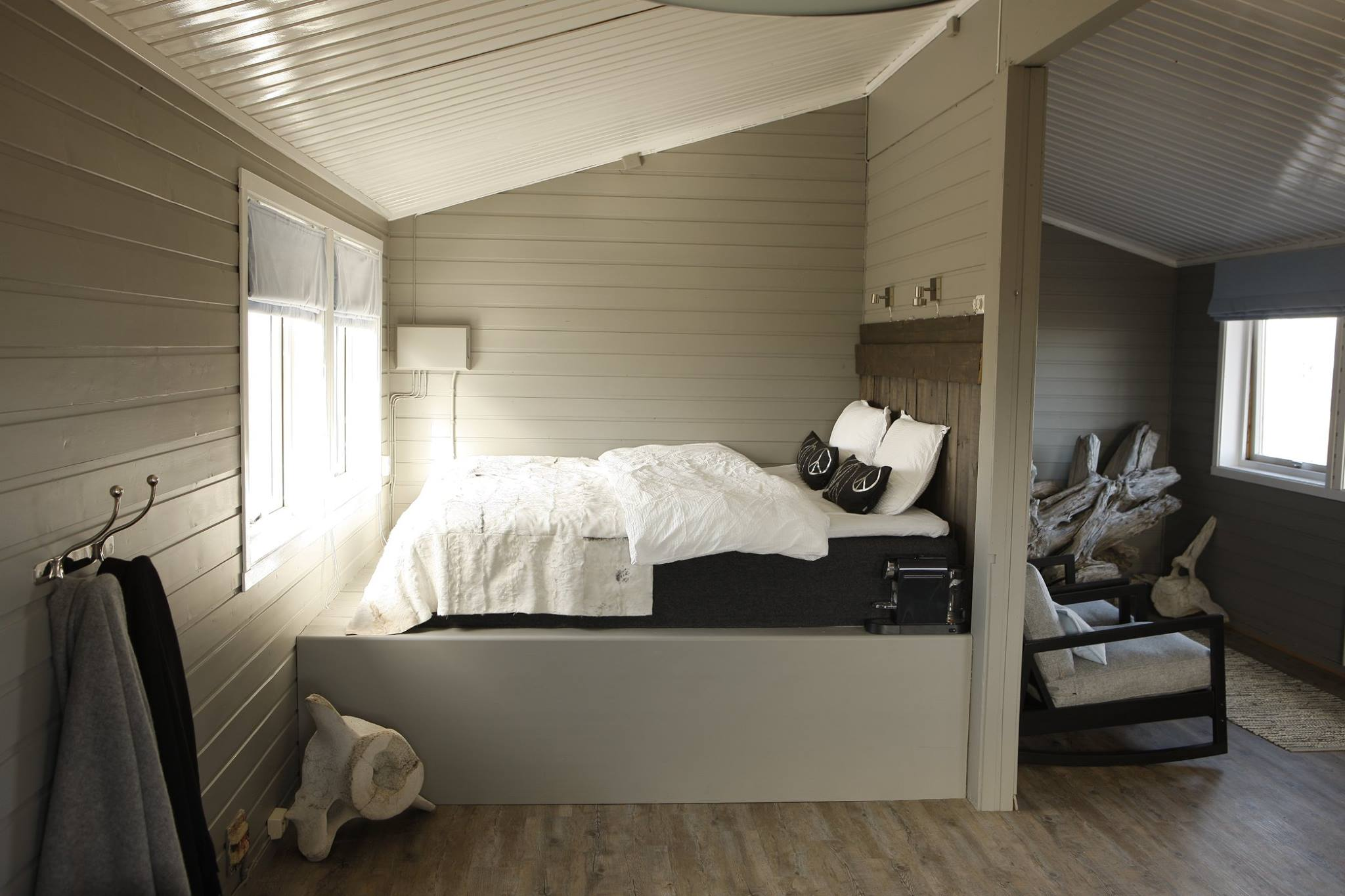 With no running water or electricity Basecamp Nordenskiöld is a true hunting cabin like those used by the trappers, but with modern comforts. We use wood for heating and get our drinking water from the melting glacier. There are 5 big bedrooms with fantastic arctic views, 11 comfortable beds, indoor toilet and a traditional sauna. The cabin is modern and comfortable with big windows giving away to the mighty glacier. Lying in the glacier moraine, the cabin is well hidden from any by passer-by.