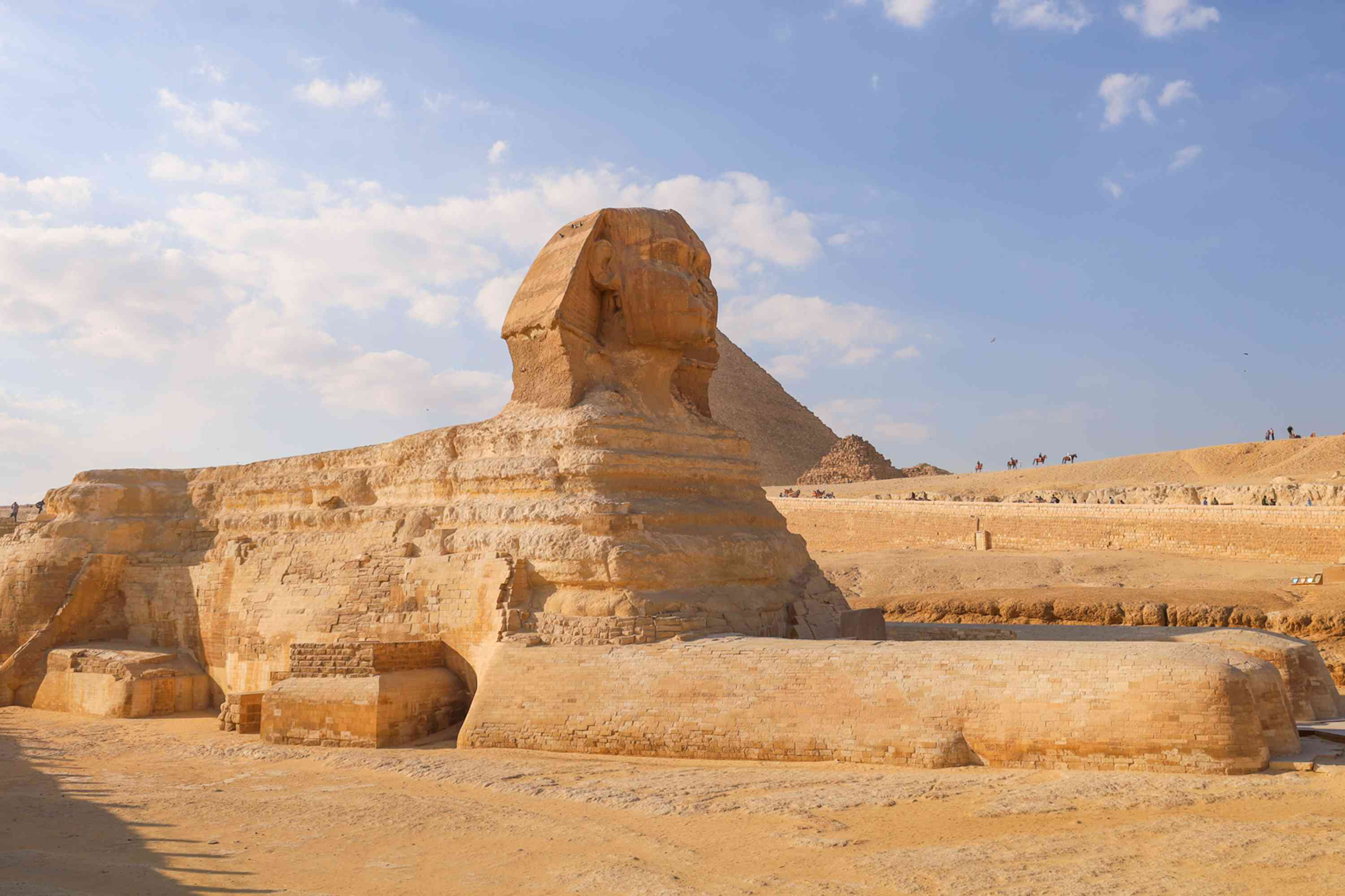 We’ll then visit the nearby Great Sphinx, with the body of a lion and the head of a king, often referred to as the national symbol of Egypt. This iconic statue is believed to have been built during the reign of Pharaoh Khafre and is thought to represent him, yet its construction and purpose remains a fascinating mystery.