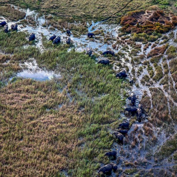 Take in the views on a scenic flight into the heart of the Okavango Delta. Climb into a mokoro (dugout canoe) and glide along the waterways around our remote camp to catch a first glimpse of the area’s abundant wildlife. Settle into comfortable tents, explore the camp, or opt to go for a swim. After lunch, embark on a wildlife cruise, watching for hippos and elephants as well as aquatic birds drawn by the region’s unique fish and insects. Enjoy a sundowner deck back at the camp before dinner under the stars.