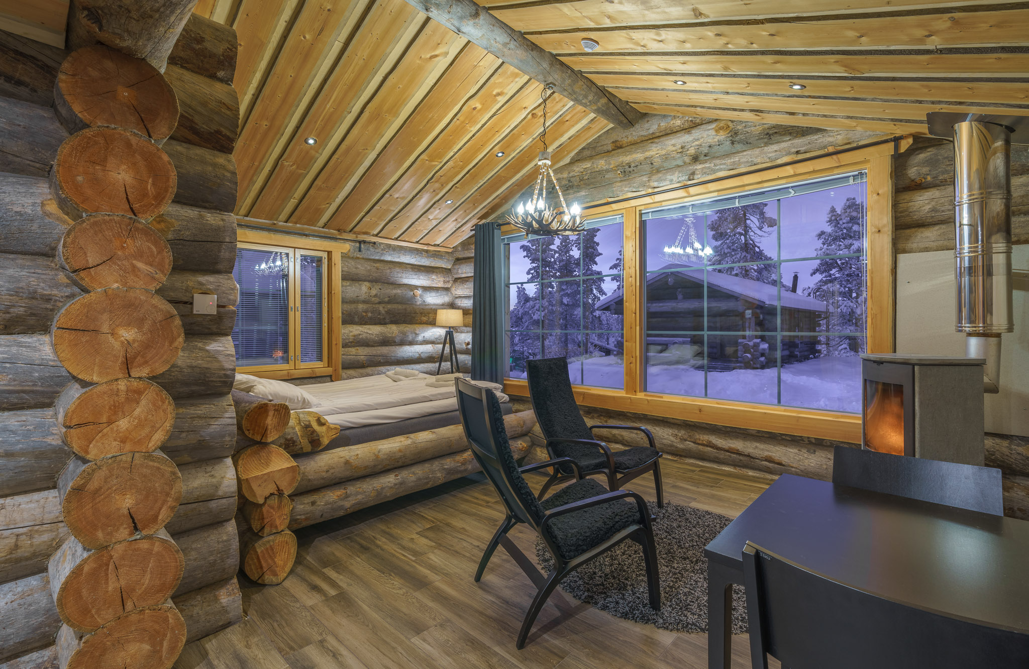 - 3 nights accommodation in log cabin/superior sauna room and 1 night in an aurora cabin (Drinks paid locally)