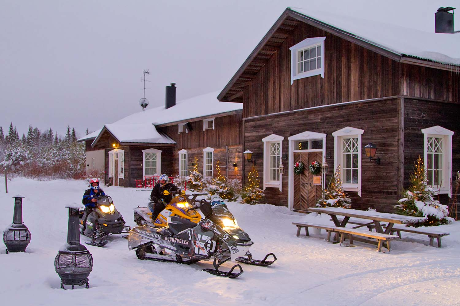 - All activities as per itinerary including: reindeer sleigh ride, husky safari (2 adults per sleigh, children in guide's sleigh), snowmobile safari with ice fishing (2 adults per snowmobile, children in guide's sled)and private family visit to Santa's cabin, making Christmas decorations and decorating gingerbread.