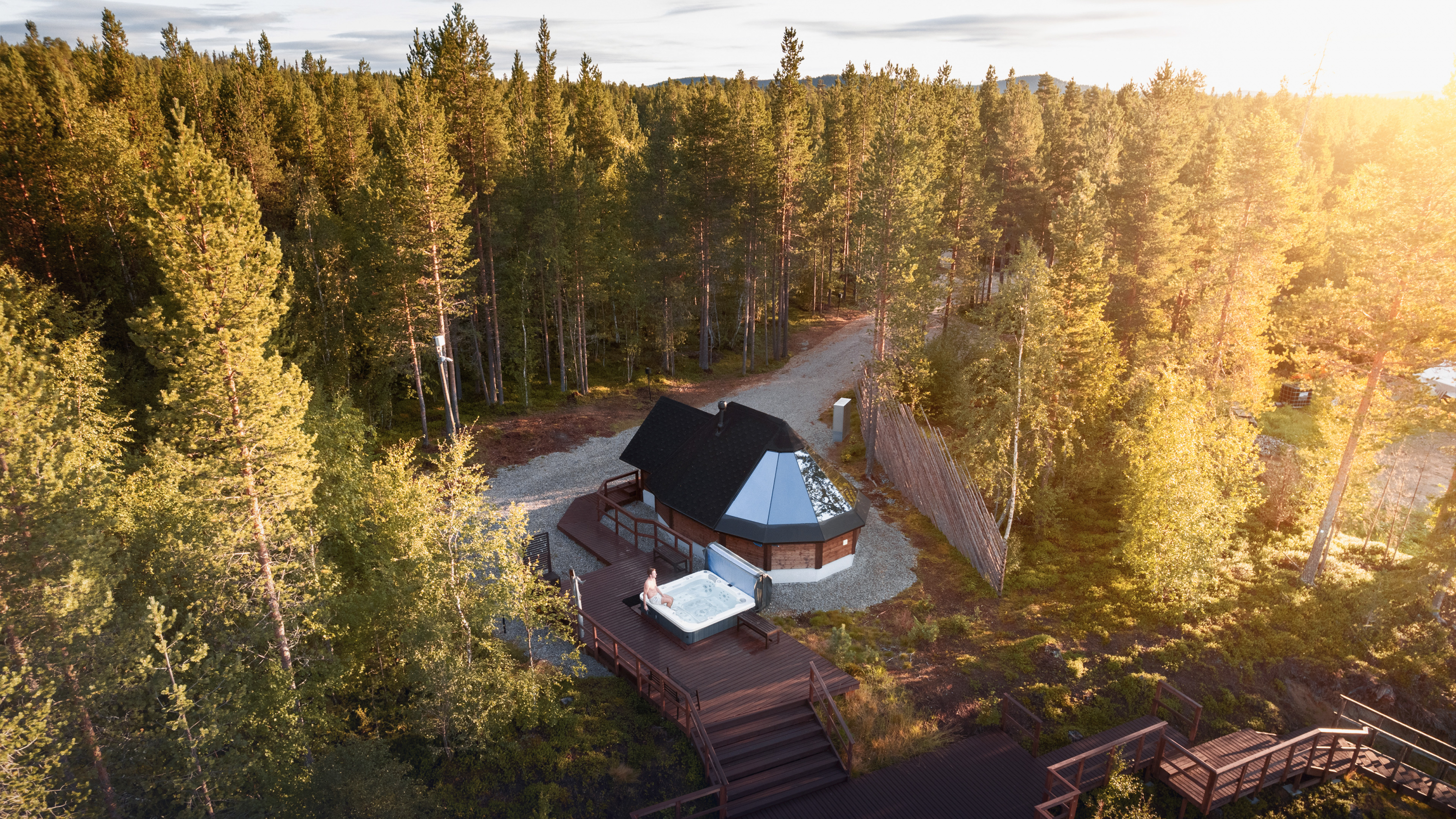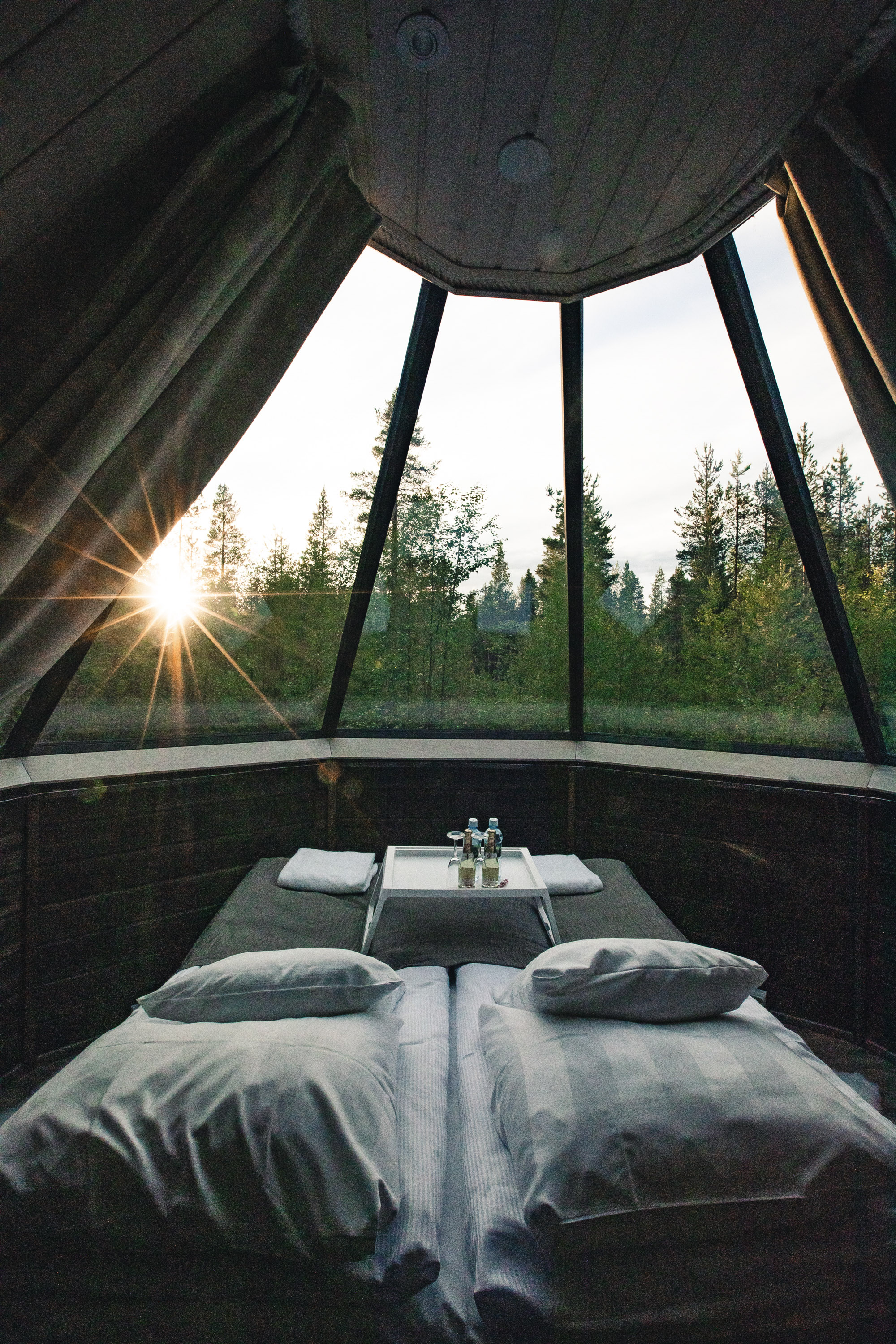 - Accommodation in Aurora Glass Cabin with half board (breakfast and dinner)