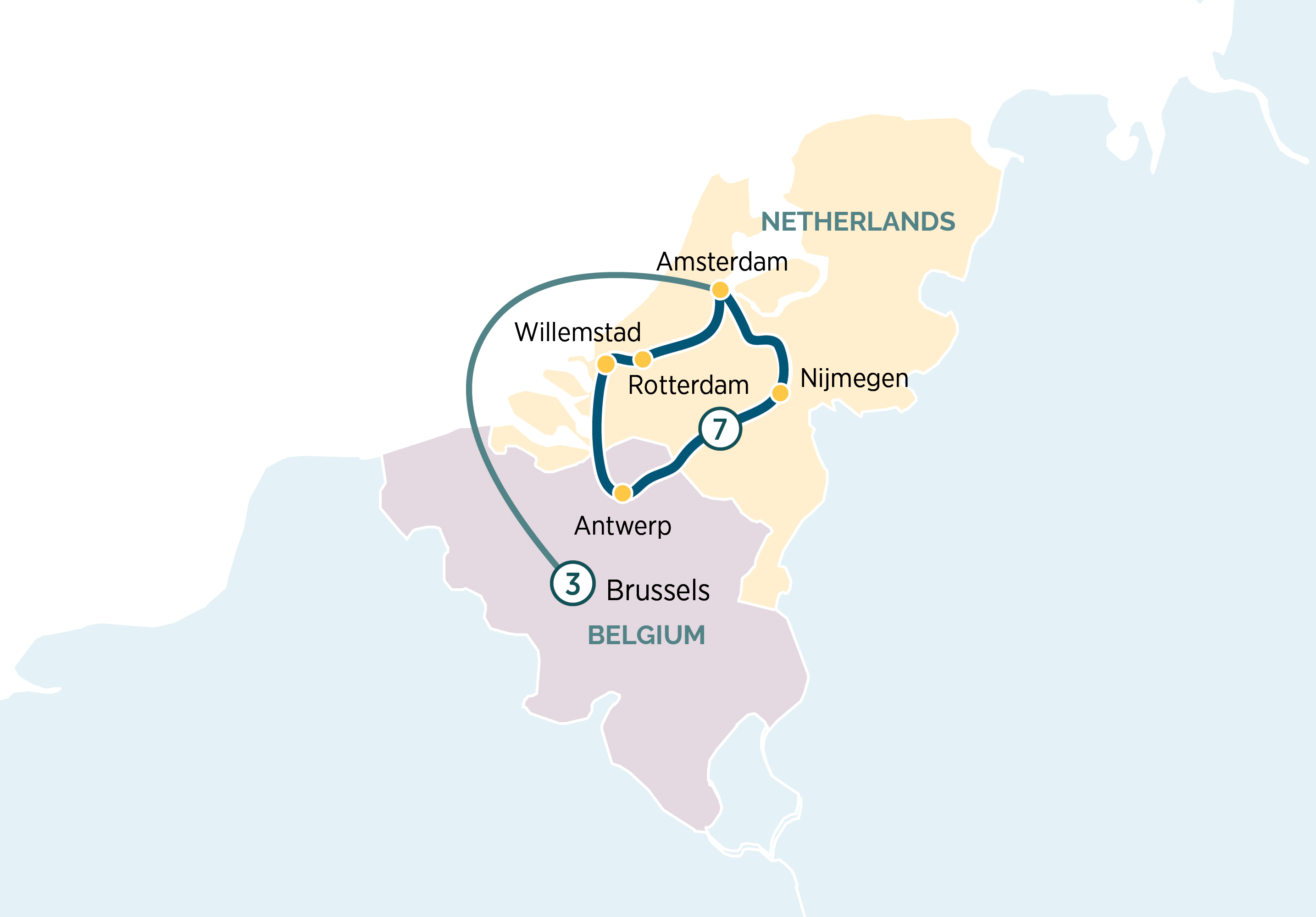 Welcome to the Netherlands. Here, you will be met at the airport by one of our Emerald Cruises representatives and transferred to your contemporary Emerald Star-Ship.