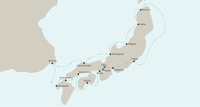 - Overnight in port in Kobe and Tokyo