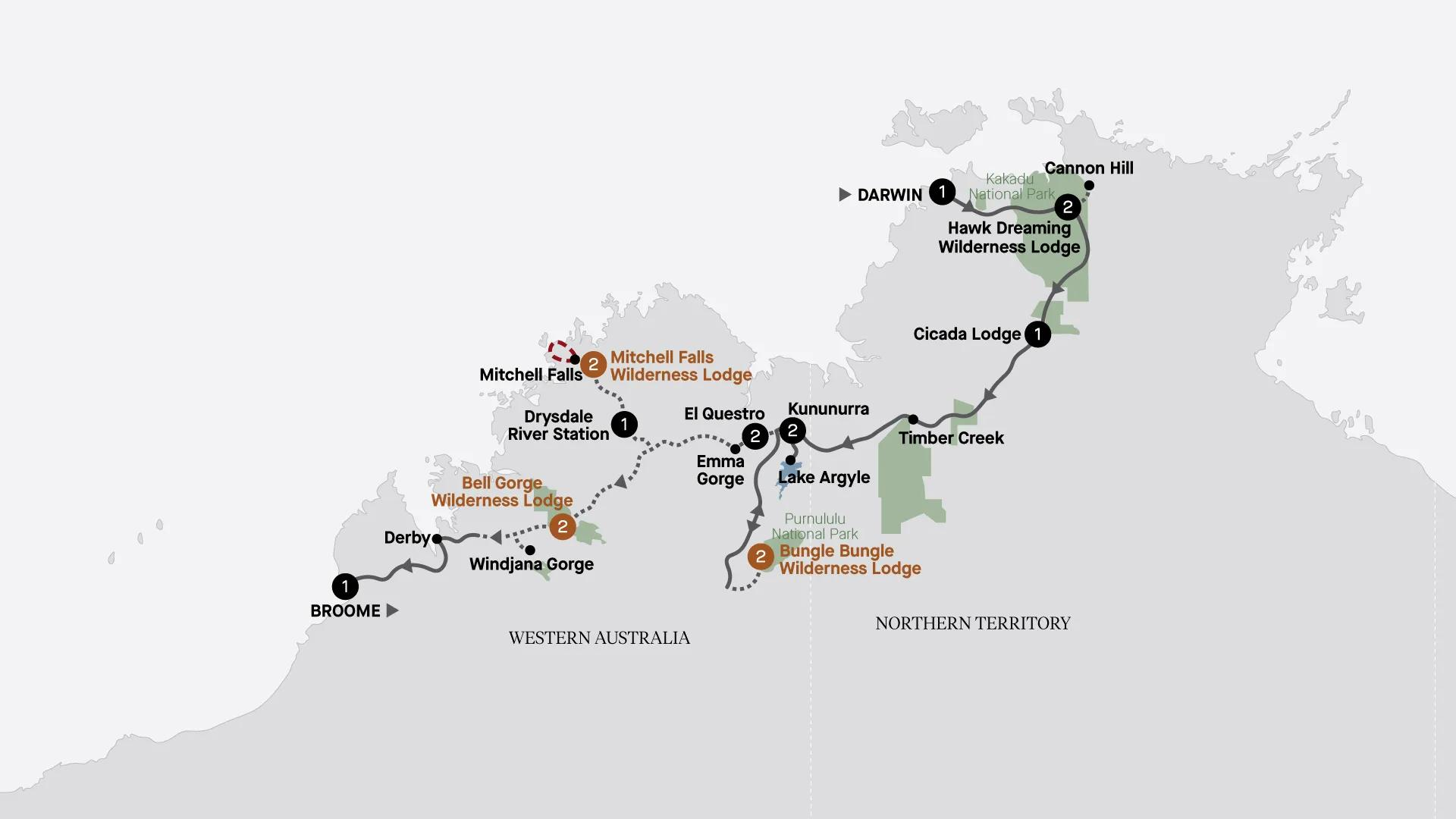 This adventure blends two iconic Outback regions of Australia on one incredible Small Group Tour with a maximum of just 22 guests. Explore Mitchell Plateau and Purnululu National Park before venturing into the Top End, where Nitmiluk Gorge and Kakadu National Park await.