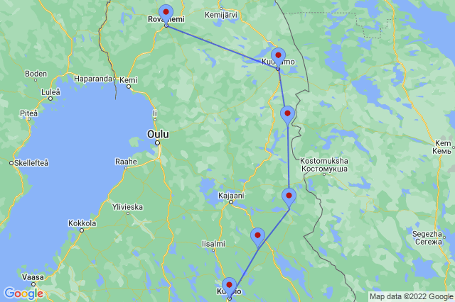 This self-drive itinerary takes you from North Karelia in Finnish Lakeland through the sparsely populated taiga forests of Finland. There are several national parks with their hiking, canoeing and fishing possibilities easily accessible from the route. Close to the Russian border you can participate in bear or wolverine observation tours overnight which give you a unique chance to watch and photograph these animals safely from the comfort of your cosy cabin with panorama windows.