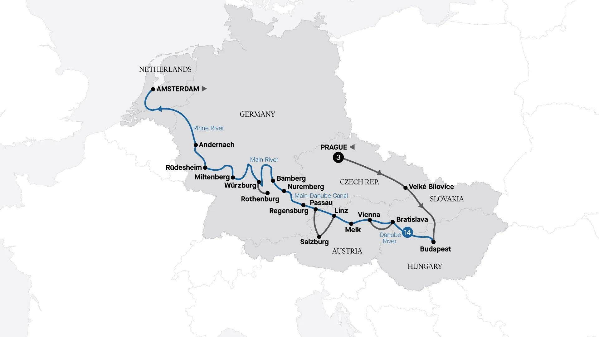 Central Europe’s most enchanting places in one spectacular journey. What’s not to love? After exploring Prague, we bring the best of Europe to you on a cruise from Budapest to Amsterdam along the Danube, Main and Rhine rivers through fairytale landscapes.