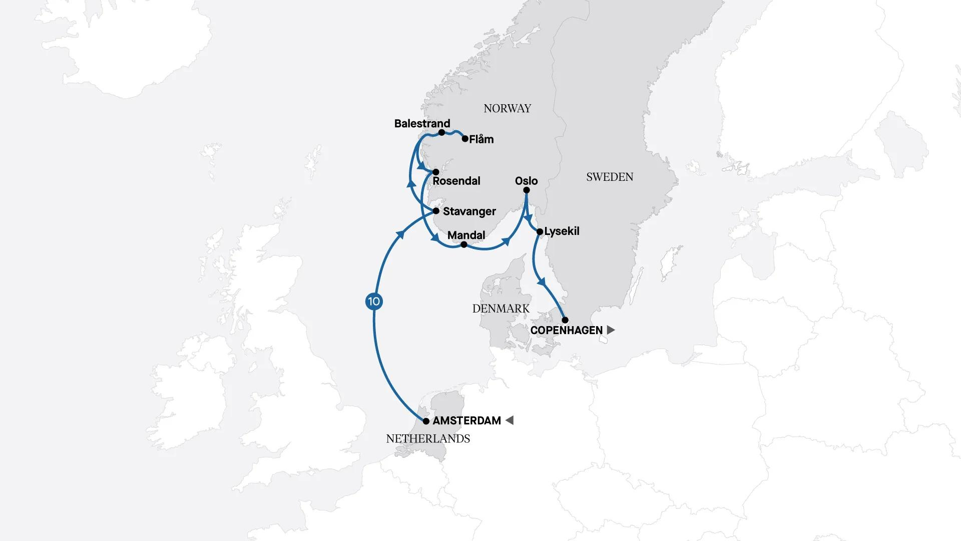 Cruise from the charming city of Amsterdam to the colourful harbours of Copenhagen on an unforgettable voyage through Northern Europe. Cross the North Sea to Norway’s dramatic fjord country, where sheer cliffs, tumbling waterfalls and glassy waters frame storybook villages like Flåm and Balestrand. Discover Stavanger’s maritime heritage, stroll Rosendal’s rose-scented streets, and soak up the culture of Oslo. Along the Swedish coast, explore the seaside town of Lysekil, before your journey concludes in Copenhagen, a city of cobbled streets, royal palaces and cutting-edge design. From historic ports to breathtaking natural wonders, each day brings a new perspective on Scandinavia’s coastal beauty.