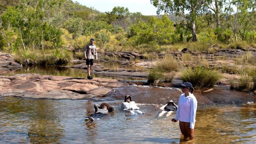 Each morning brings new possibilities shaped by 14-metre tides, weather patterns, and wildlife movements. You’ll join our expedition team in explorations of hidden gorges, cast lines in remote fishing spots known only to pearl lugger captains, and witness phenomena like Montgomery Reef emerging from the ocean as billions of litres drain away with the falling tide.