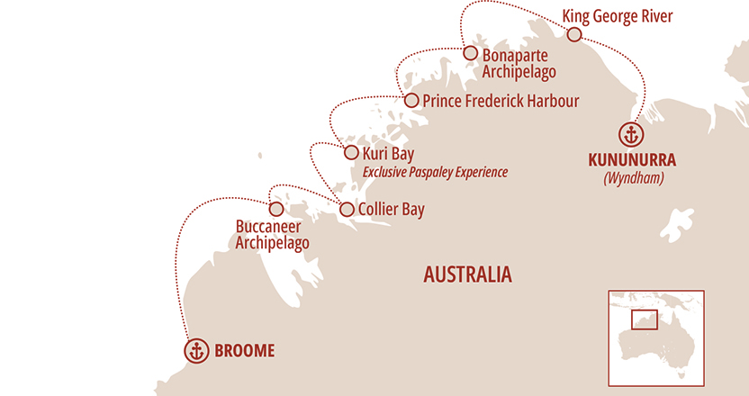 Over the next 10 nights, you’ll navigate waters that have remained virtually unchanged for millions of years. Our ‘boutique’ sized vessel allows you to experience all of the visitor sites along the Kimberley Coast, 75% of which are inaccessible to other ships and operators, opening up a world of new discovery.