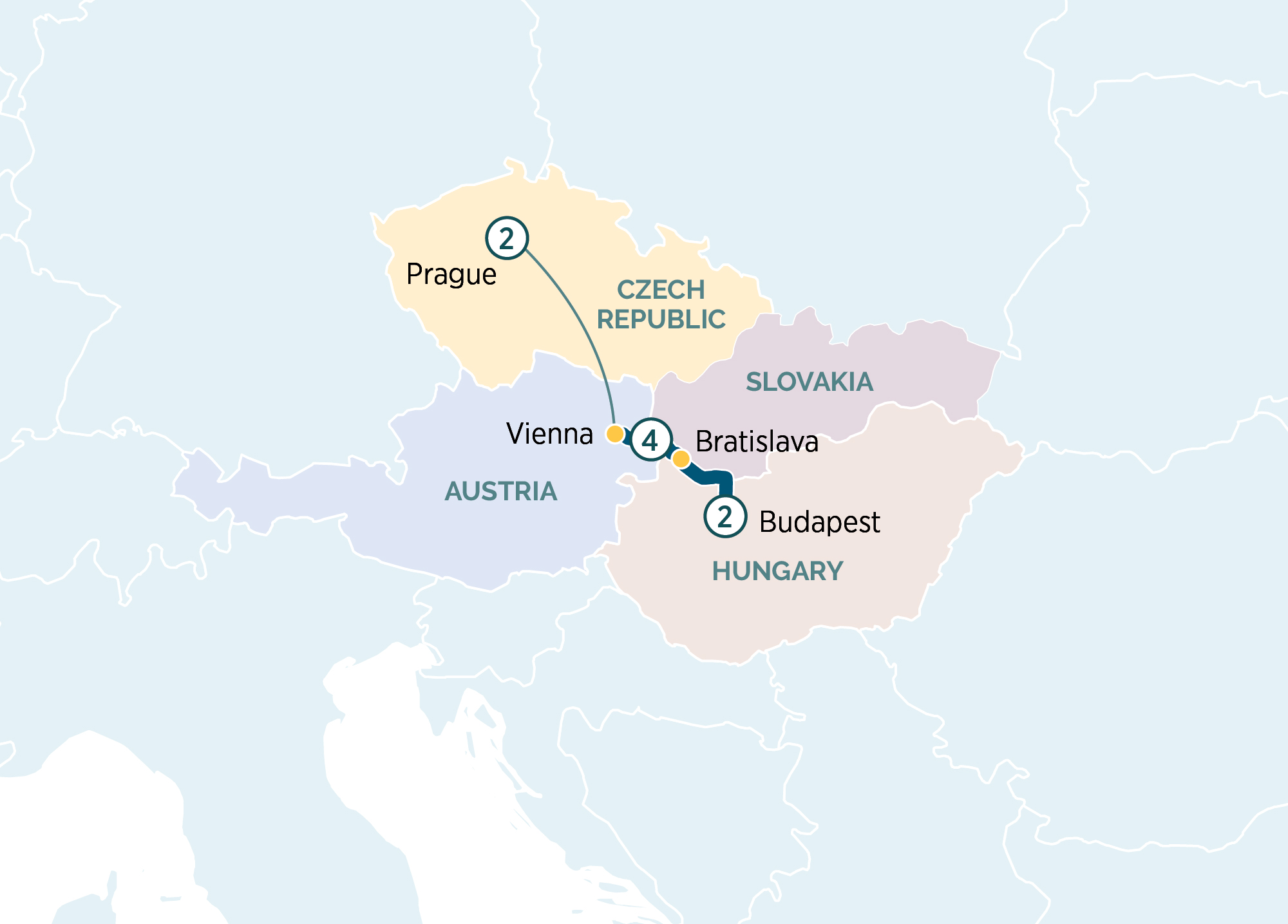 Enjoy the splendour of the Danube at Christmas time with this mini itinerary. Experience the majesty of Budapest, uncover the eastern charm of Bratislava and wander the twinkling festive markets of Vienna.