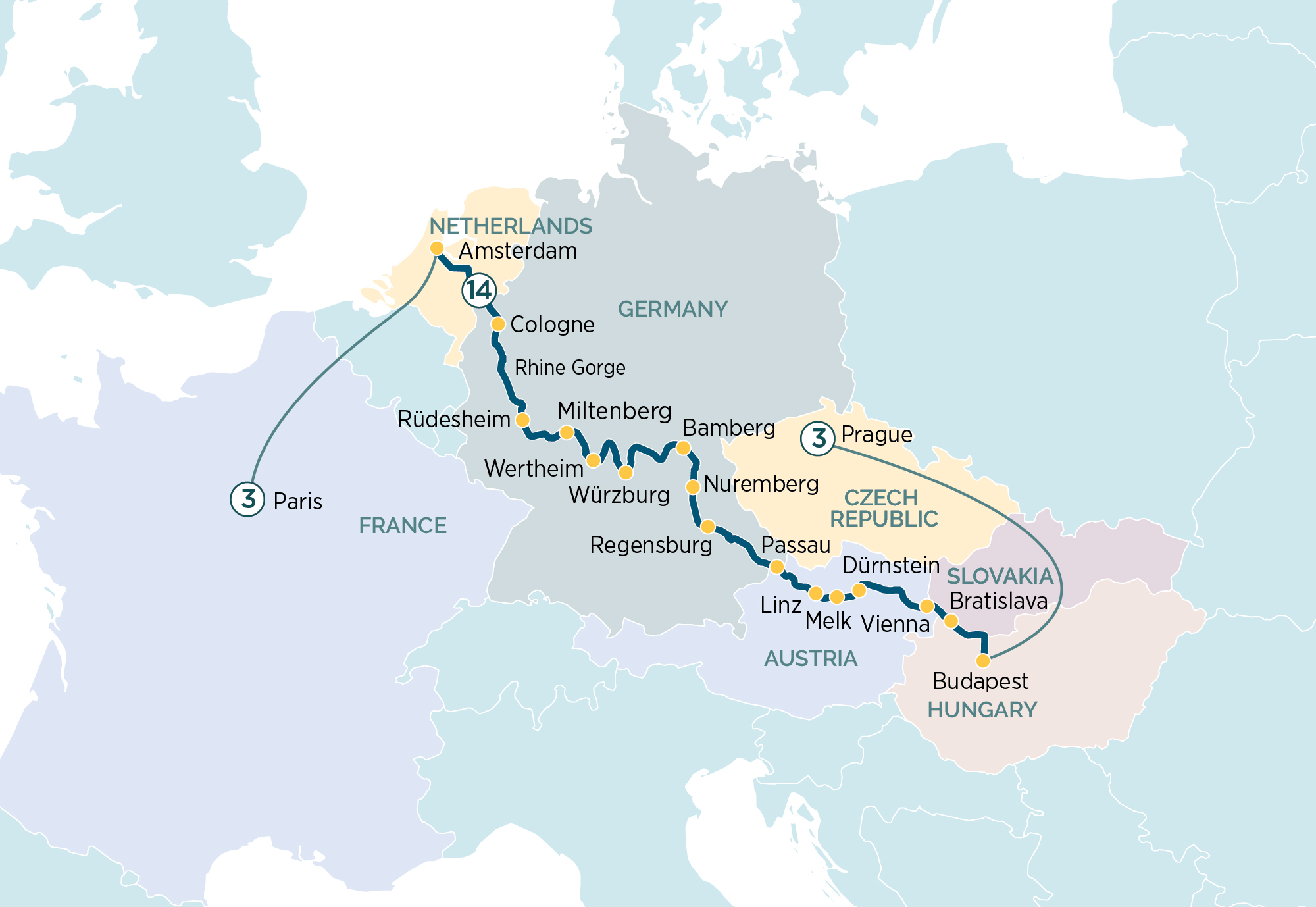 A classic journey on the Rhine, Main, and Danube rivers promises spectacular landscapes, rich culture, and fascinating history, where world-class cities are complemented by romantic towns.