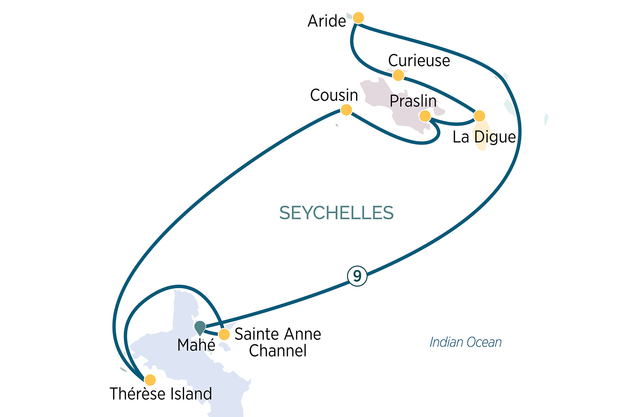 Welcome aboard this 10-day cruise through the scenic Seychelles, setting sail from the tropical paradise of Mahé Island. Along the way, explore Sainte Anne Channel, home to exquisite marine life, then venture to Thérèse Island, a small uninhabited island with rugged rock formations and lush tropical vegetation. Discover some of the best beaches in the world at Praslin Island and La Digue Island and observe incredible wildlife on Curieuse Island and Aride Island, before returning to Mahé island.