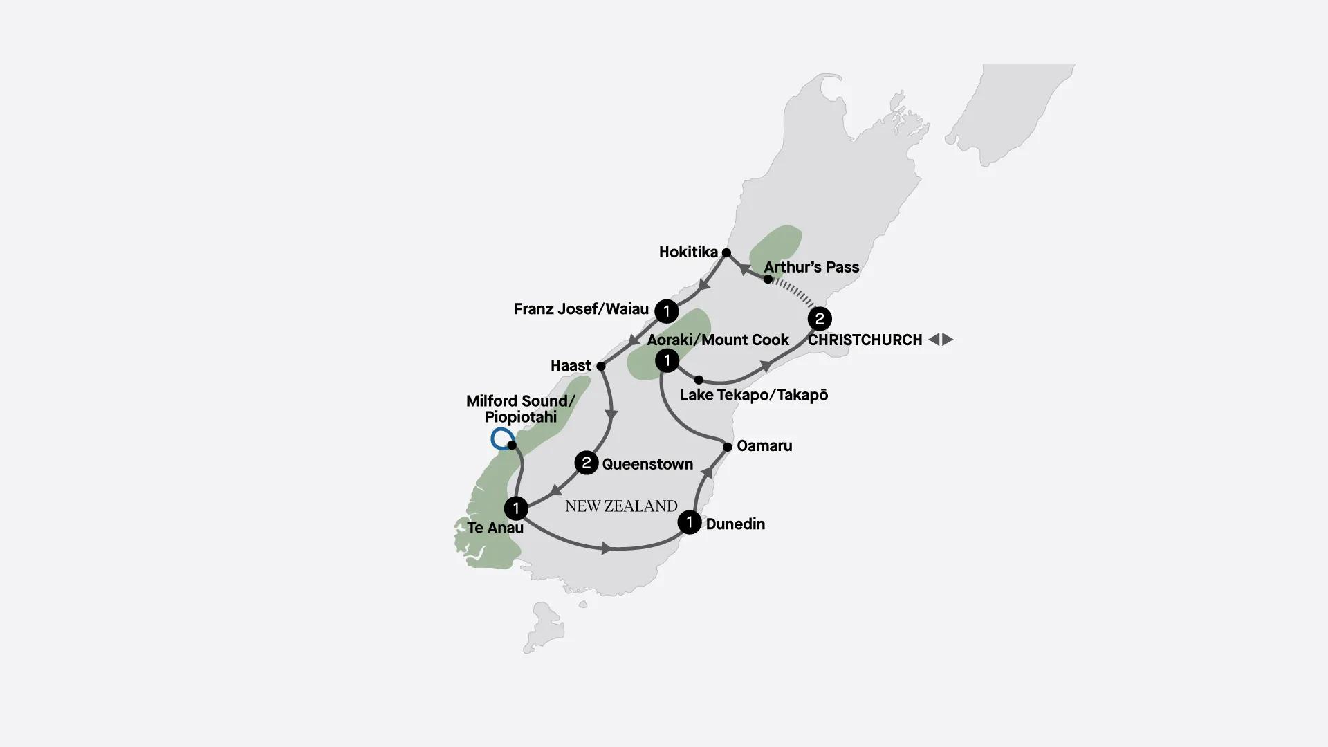 Explore New Zealand’s South Island over nine days. Ride the iconic TranzAlpine train and take in the idyllic surrounds at Franz Josef. Discover beautiful Queenstown and cruise Milford Sound/Piopiotahi, before visiting Dunedin. Enjoy stunning views from your Aoraki Mt Cook hotel, and see Lake Tekapo’s Church of the Good Shepherd.