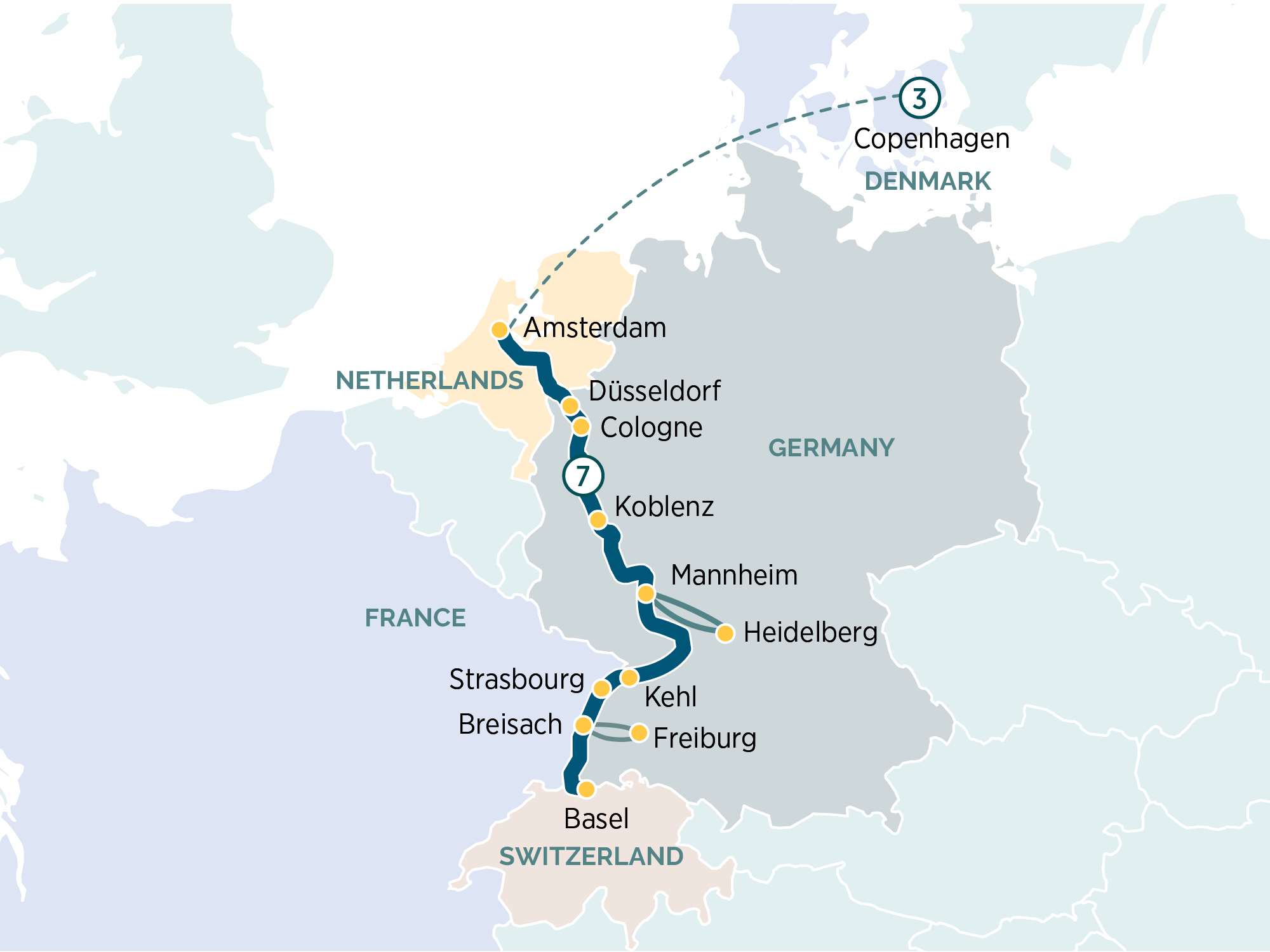 This morning, you’ll cross the German border and arrive in the vibrant city of Düsseldorf. With its innovative architecture, high-end art scene and passion for fashion, this is one of the country’s most captivating cities. After lunch, continue along the Rhine River to Cologne. Founded by the Romans in 50 AD, Cologne is one of the oldest cities in Germany and was almost completely rebuilt after the destruction during World War II. Look out for the twin spires of its Gothic cathedral, known locally as the Kolner Dom.