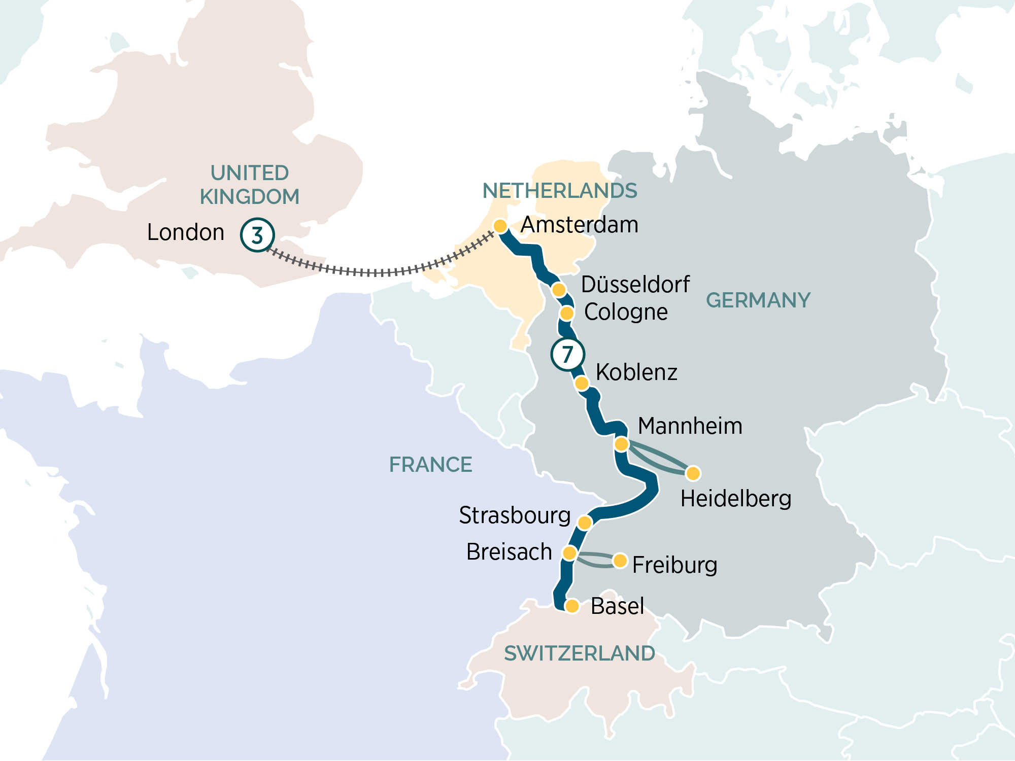 Later, you’ll arrive in the vibrant city of Düsseldorf. With its innovative architecture, high-end art scene and passion for fashion, Düsseldorf is one of the country’s most intoxicating cities.