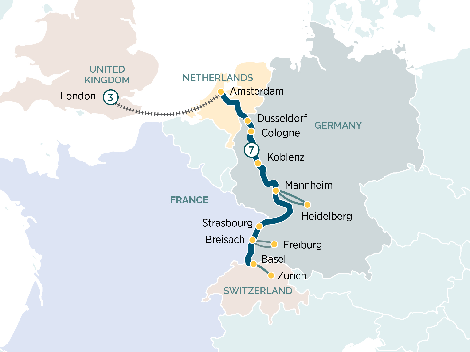 Later, you’ll arrive in the vibrant city of Düsseldorf. With its innovative architecture, high-end art scene and passion for fashion, Düsseldorf is one of the country’s most intoxicating cities.