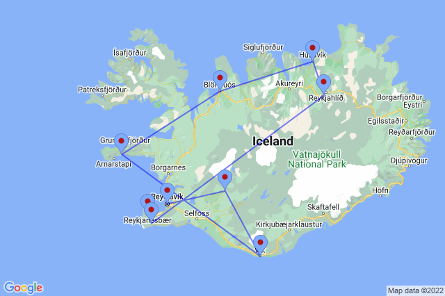 This Iceland itinerary can be tailor made to suit your plans. Flight from Akureyri to Reykjavik Domestic Airport included.